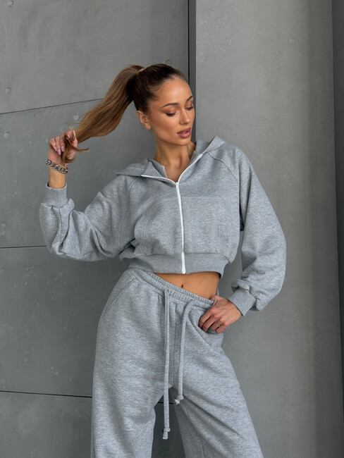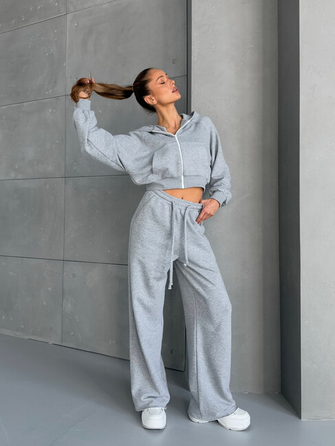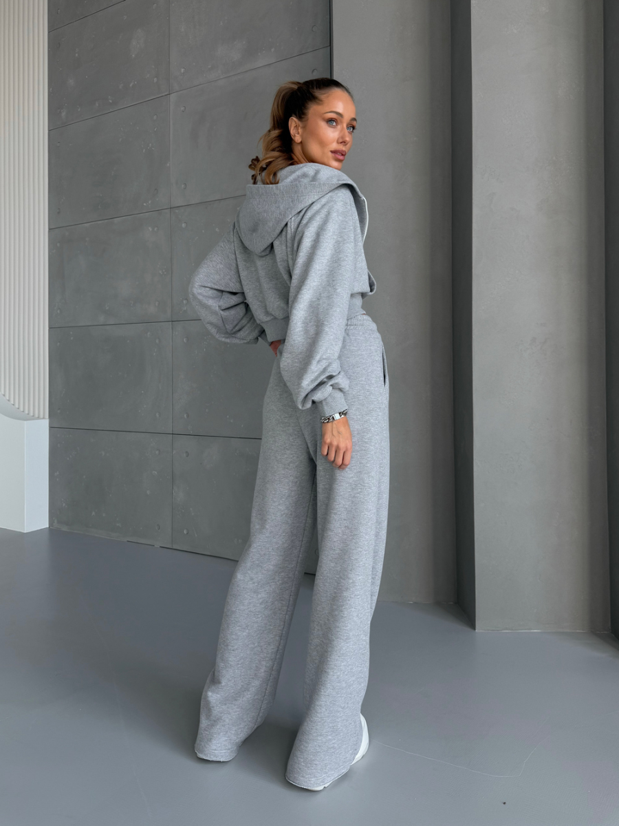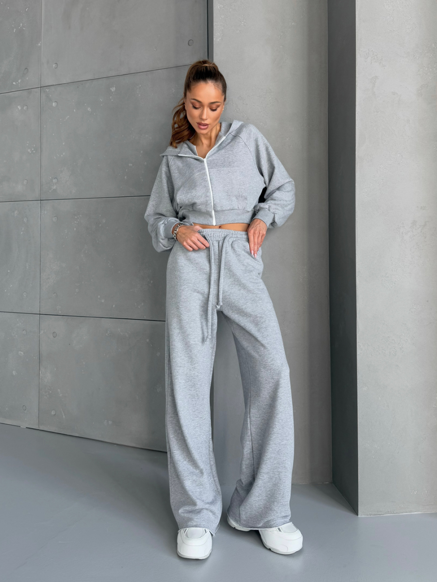 Костюм з zip-худі та штанами прямого крою сірий меланж